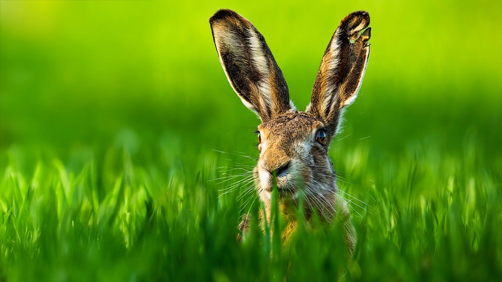 Svenska Jägareförbundet önskar dig en trygg, ljus och naturnära påskhelg, fylld av fina upplevelser, kanske till och med i sällskap av en fälthare på grönt vårgräs. Foto: Mostphotos