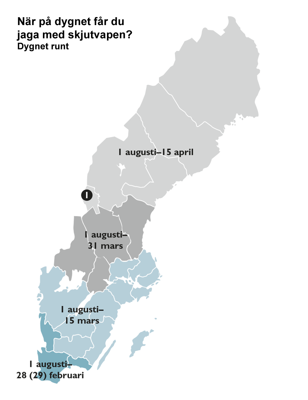 Grävling som förekommer i vilthägn – samt grävling, rödräv och skogsmård som förekommer tillfälligt på ö, holme eller skär – får jagas om det behövs med hänsyn till viltvården den 1 juli–30 juni.